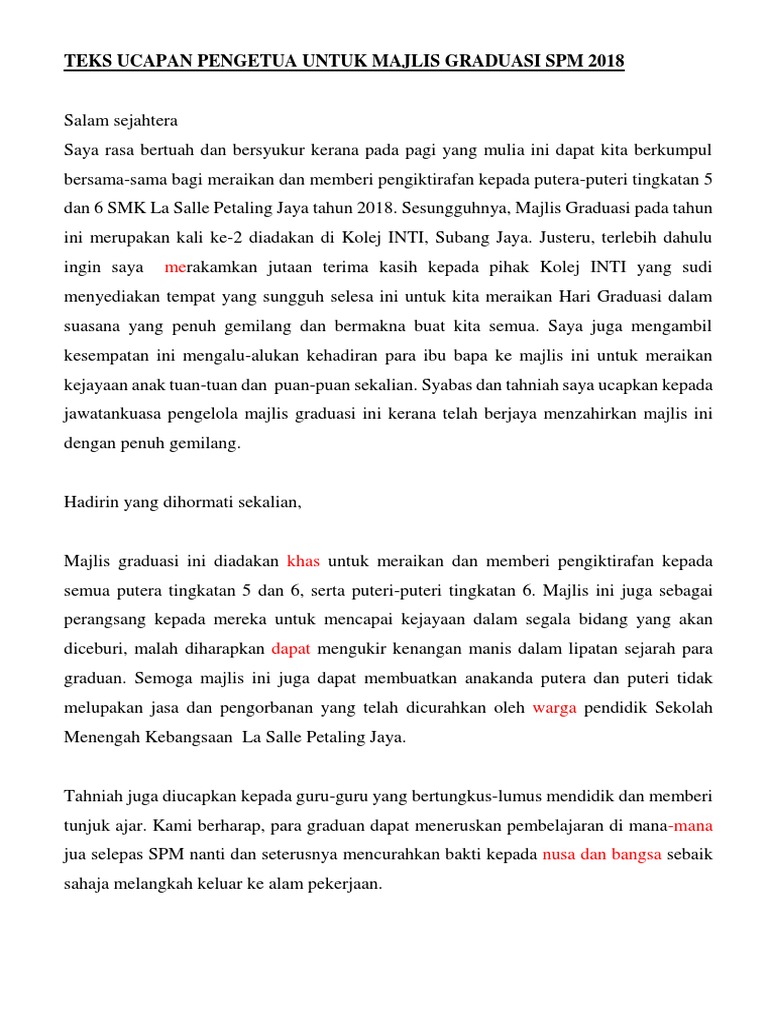 Teks Ucapan Pengetua Majlis Graduasi 2018 1 Edited Pdf